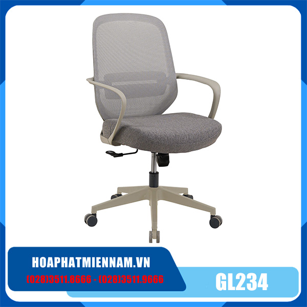 Ghế lưới lưng trung GL234 được chế tạo từ những vật liệu chất lượng cao, tối ưu hóa cho kỹ năng sản xuất và độ bền theo thời gian. Phần lưng ghế được làm từ vải lưới cao cấp, không chỉ tạo điểm nhấn thẩm mỹ mà còn đảm bảo thoáng khí tối ưu trong suốt ngày làm việc. Khung tựa được bọc bằng nhựa bền vững, kết hợp với đệm mút được bọc vải êm ái, tạo thành một bề mặt ngồi vô cùng thoải mái.